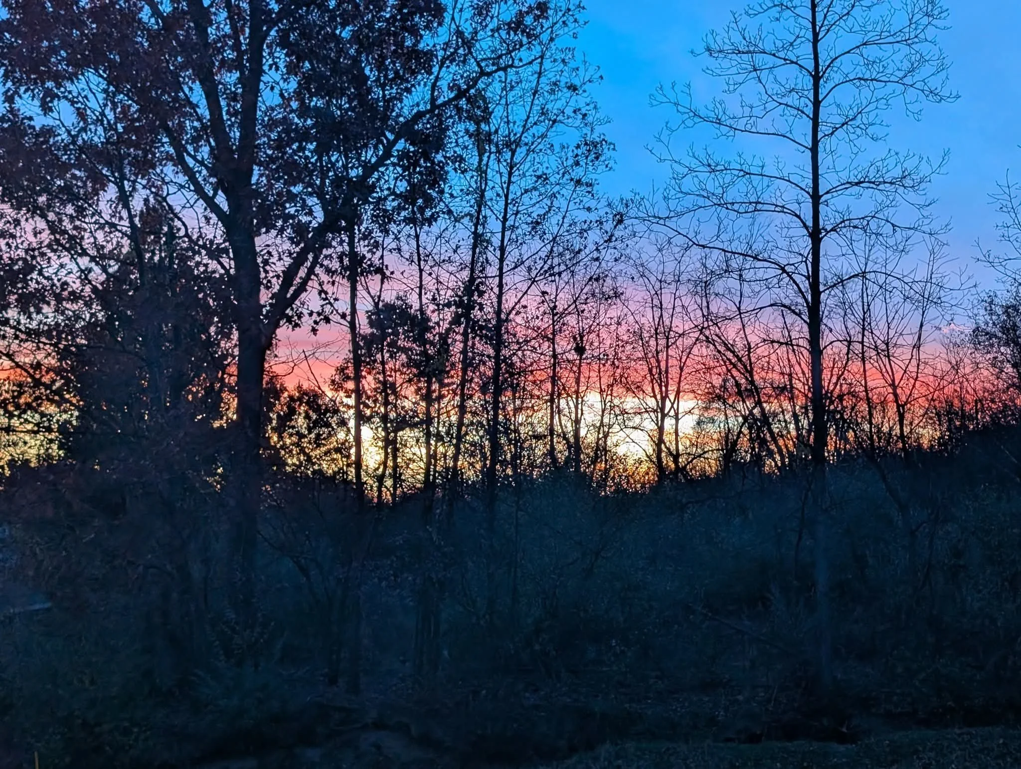 The leaves atop the trees, their silhouettes,